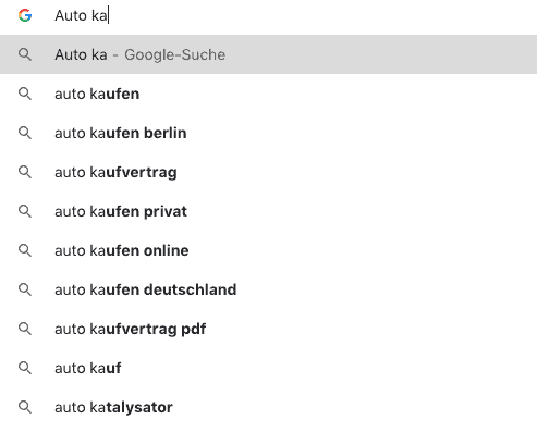 Wenn du zum Beispiel bei „Auto Kaufen Privat“ ganz oben rankst, „Auto Kaufen Privat“ aber nicht mehr im Autocomplete angezeigt wird, kannst du ganz schnell Besucher verlieren.